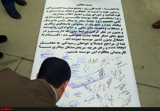بر اساس گزارش یکی از معترضین گفت: تقریبا یکسال پیش به دلایلی که ما بیخبریم به دستور شورای عالی پول اعتبار، بانک مرکزی وقوه قضائیه فعالیت تمامی ۴۸۰ شعبه موسسه ثامن الحجج متوقف و در نتیجه حدود ۲۷۰۰ پرسنل آن تاکنون سرگردان ماندهاند.