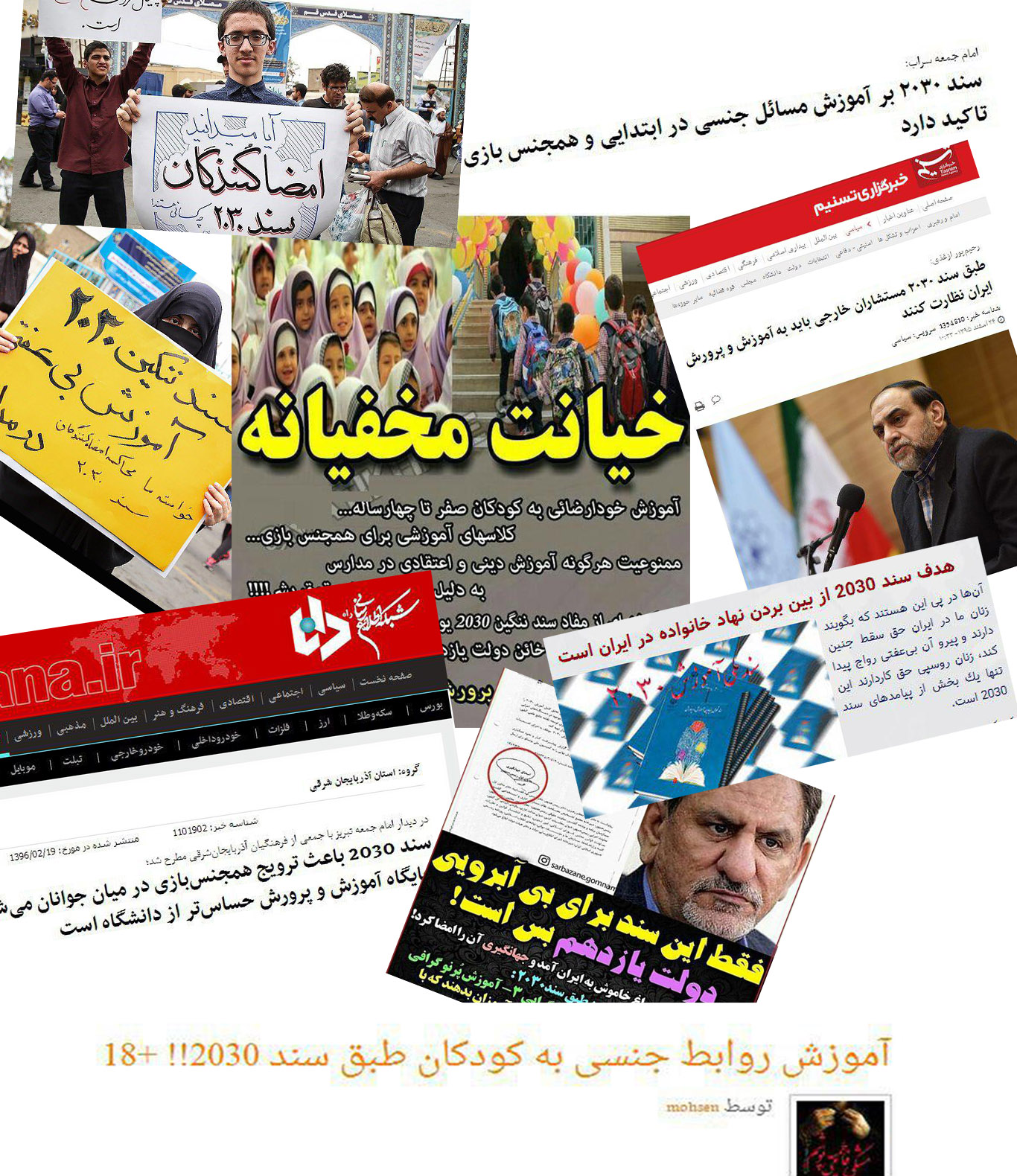 آنها مدعی بودند که در سند ۲۰۳۰ آموزش خودارضایی و همجنسگرایی در مدارس الزامی خواهد شد این در حالی است که حتی یک بار هم در سند، این کلمات نیامده است و تماماً ساخته و پرداخته اتاق های علمیات روانی دلواپسان بود.