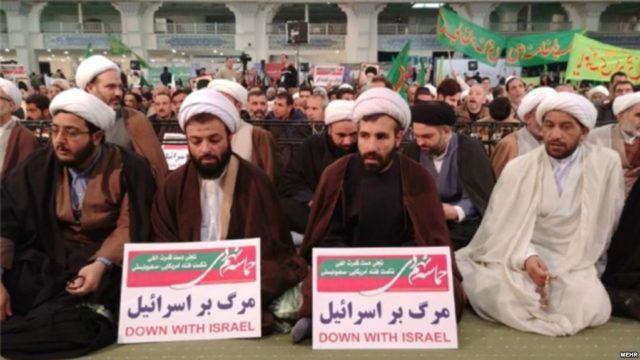 تلویزیون دولتی ایران روز شنبه تصاویری را پخش کرد که چند هزار نفر در مصلی تهران گردهم آمده بودند و پلاکاردهایی در حمایت از آیتالله علی خامنهای، رهبر جمهوری اسلامی، و حاوی شعارهایی چون «مرگ بر فتنهگر» و «برجام را پله کردید/ ملت را ذله کردید» در دست داشتند.