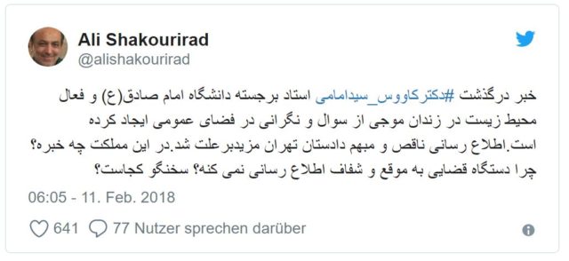 صادقی با بیان اینکه دو نقل درباره فوت آقای سیدامامی وجود دارد، تصریح کرد: اینطور که گفته شده با خانواده این استاد دانشگاه امام صادق تماس گرفته شده و اعلام کردند که آقای سیدامامی خودکشی کردهاند نقل دیگر هم این است که این جامعهشناس به دلیل ایست قلبی جان خود را از دست داده است.