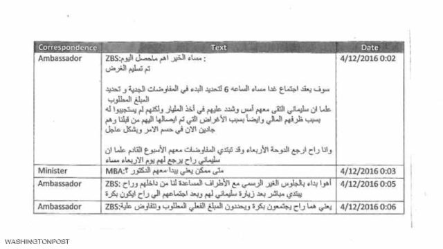 بهگزارش وبسایت خبری «کردستان ۲۴»، زید بنسعید الخیارین، سفیر قطر در عراق که مسؤولیت مذاکره با ربایندگان را برعهده داشت، در این رابطه در نامهای به وزیر خارجه قطر نوشته: «حزبالله لبنان، گروه حزبالله عراق و سوریها، همه آنها درخواست پول میکنند. آنها از این فرصت استفاده کردهاند و همه آنها دزدند».