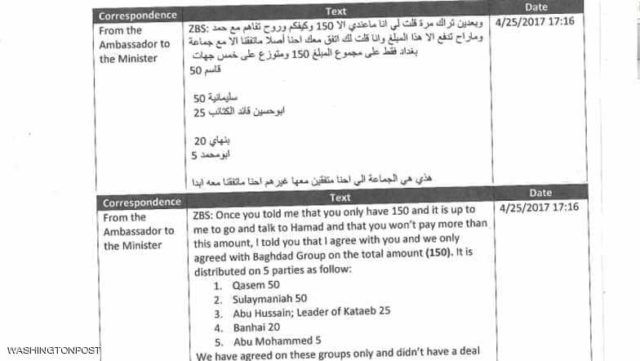 به نوشته واشنگتنپست، ۷۵میلیون دلار از این باج، مستقیماً به سپاهپاسداران و سازمانهای «کتائب حزبالله» و «جبههالنصره» در عراق، پرداخت شده است.
