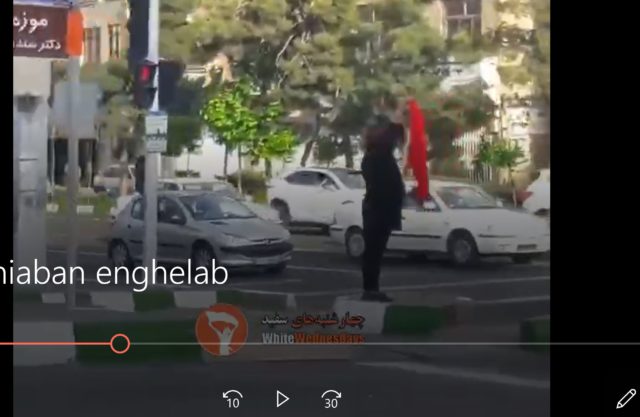 تقاطع قائم مقام فراهانی و مطهری زنی روی سکو و نماد اجبار بر چوب. شعله اعتراض #دختر_خیابان_انقلاب روشنه. به مامور #گشت_ارشاد لوح بدهید،زنان شجاع تر میشوند. #دوربین_ما_اسلحه_ما لحه_ما