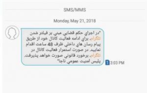 در زیر تصویر یکی از پیامکها به این ادمینهای کانالهای تلگرامی را میبینید.