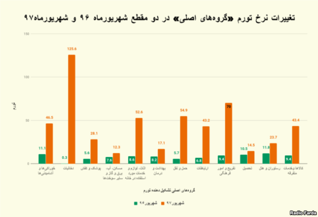 شاخص بهای گروههای «تفریح و امور فرهنگی» با رشد ۷۰ درصدی، «حمل و نقل» با رشدی ۵۴.۹ درصدی و «اثاث، لوازم و خدمات مورد استفاده در خانه» با تورم نقطه به نقطه ۵۲.۶ درصدی در ردههای بالای تورم در میان گروههای ۱۲ گانه تشکیل دهنده تورم بودند.