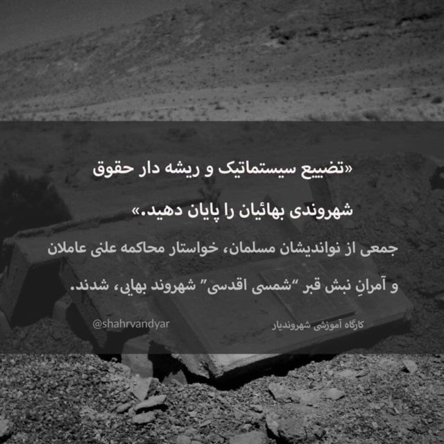 ▫️ما امضاء کنندگان زیر، به عنوان شماری از نواندیشان مسلمان، عمل زشت نبش قبر پیکر بانویی از هم‌وطنان بهایی‌مان در ایران را به شدّت تقبیح می‌کنیم. برخورد ضعیف نیروی انتظامی با این عمل شنیع نیز به اندازه اصل این عمل شرم‌آور و شایسته‌ پیگیری قضایی است.