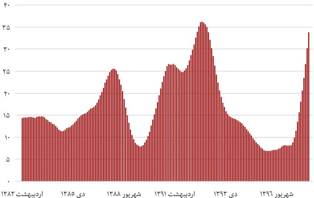 از فروردین ۱۳۹۶ هر ماه در ایران تورم از ماه قبل بیشتر بوده است.