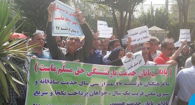 معلمان و فرهنگیان بازنشسته از روز گذشته در مقابل سازمان برنامه و بودجه دست به تجمع اعتراضی زده و خواستار پرداخت پاداش پایان خدمت خود هستند. آنها میگویند تاخیر در پرداخت مطالباتشان زندگی و معیشت آن ها را با دشواری مواجه کرده است.