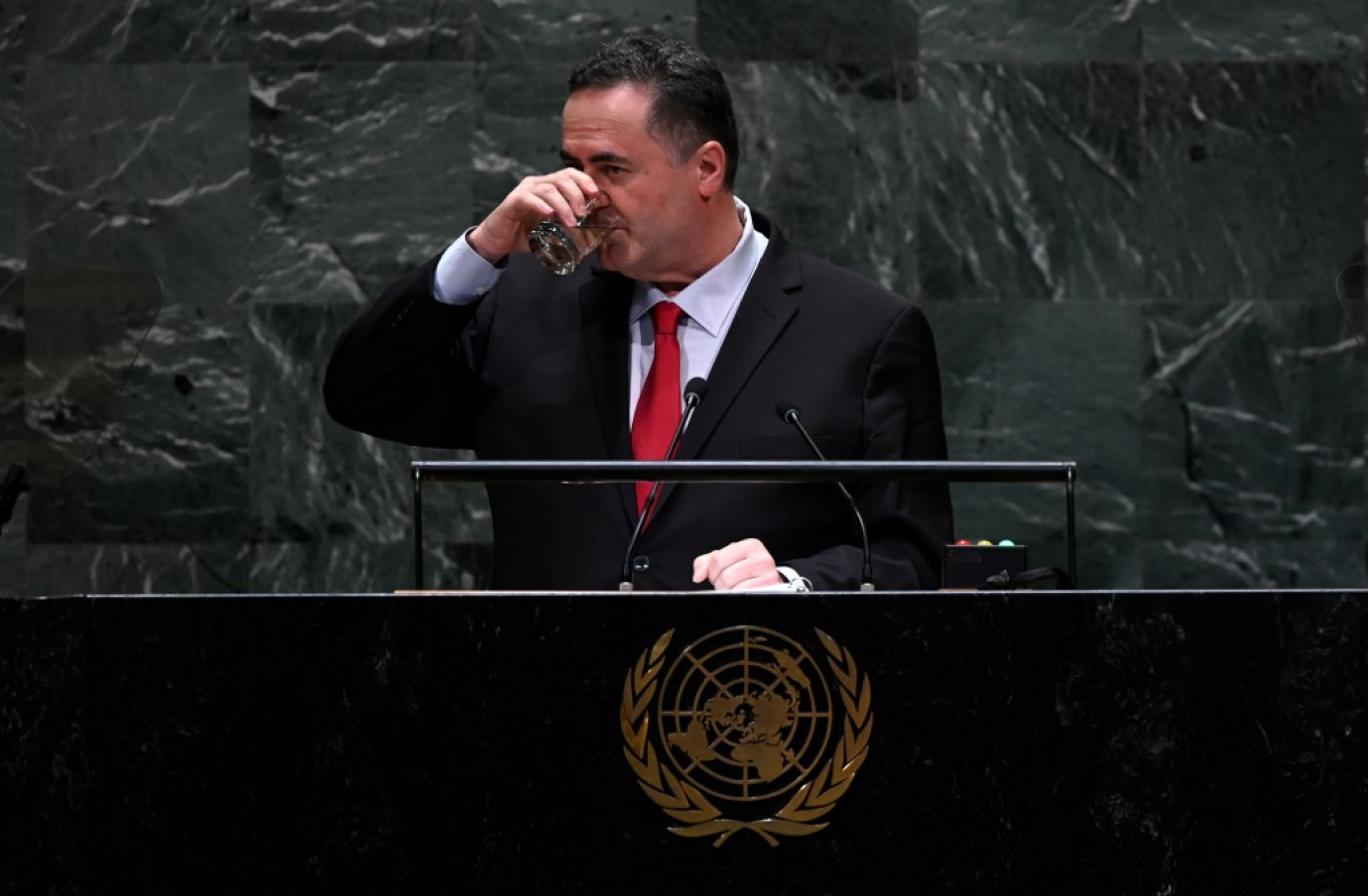 اسرائیل کاتز، وزیر خارجه اسرائیل، در مجمع عمومی سازمان ملل، ۲۶ سپتامبر ۲۰۱۹- Johannes EISELE / AFP
