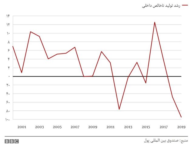 صندوق بینالمللی پول برآورد کرده است که در سال میلادی جاری ایران با رشد تقریبا منفی ۱۰ درصدی مواجه شود.