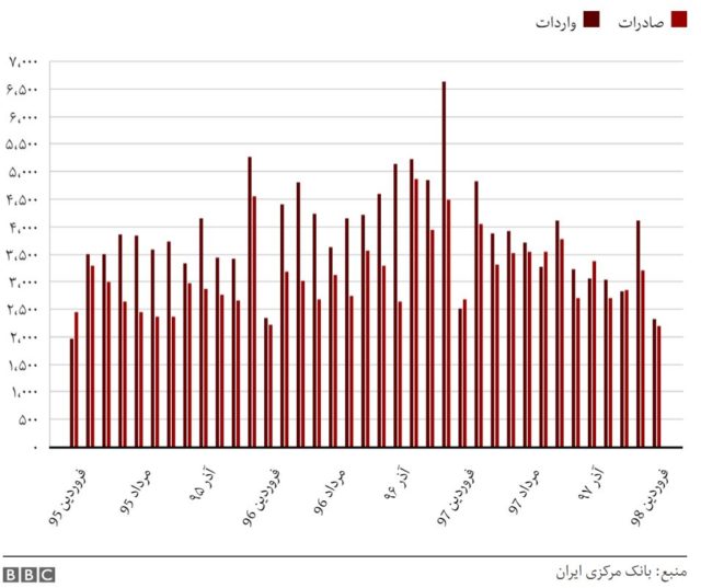 سقوط صادرات نفت، که منبع اصلی درآمد ارزی ایران است، به سقوط ارزش ریال در برابر ارزهای خارجی و کاهش واردات منجر شده است.