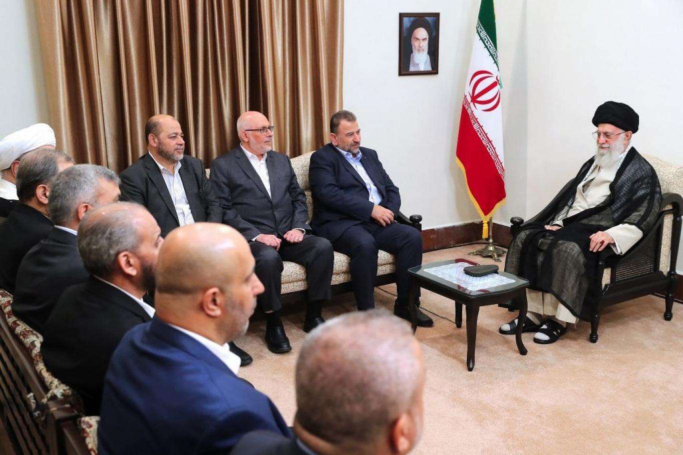 هیئت سازمان حماس در دیدار با آیت الله خامنه ای در تهران. عکس از: آسوشیتد پرس (اندیپندنت عربی)