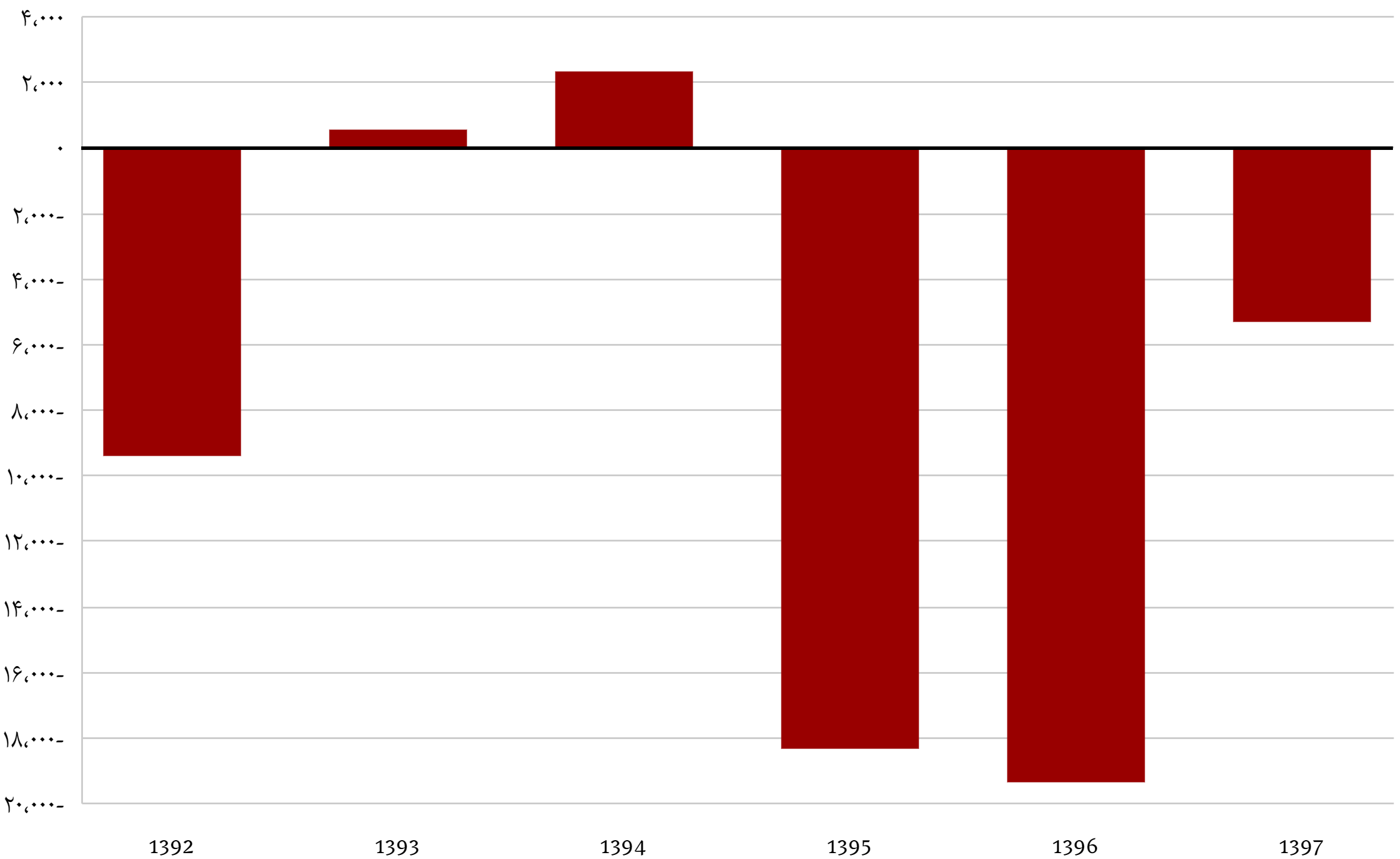 تنها در بهار سال ۱۳۹۷ خالص حساب سرمایه ایران زیرمنفی پنج میلیارد دلار بود، یعنی در این مدت پنج میلیارد دلار بیش از آنچه وارد ایران شد از ایران رفت.