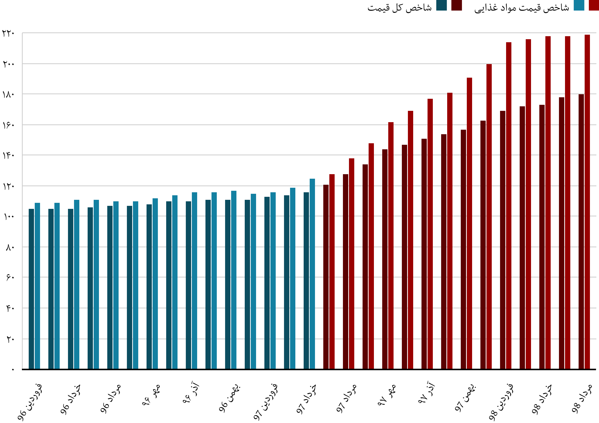 گرانی مواد خوراکی در این مدت شتابی بیشتر از بالا رفتن کلی سطح قیمتها داشته است.
