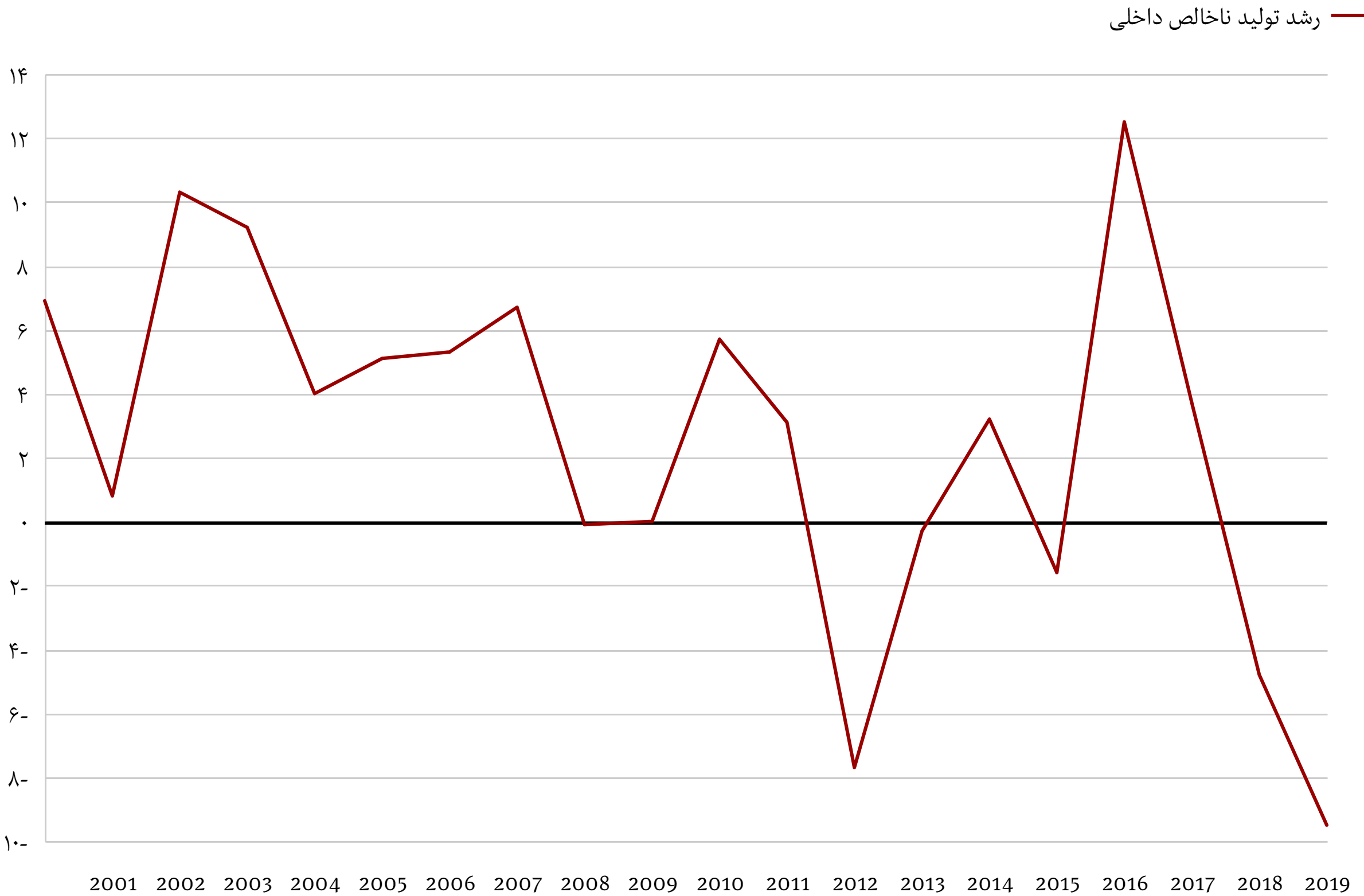 در سال ۱۳۹۷ رشد اقتصادی ایران نزدیک منفی پنج درصد بود. یعنی حجم کل تولید کالا و ارائه خدمات نسبت به سال قبل آن کمتر شد.