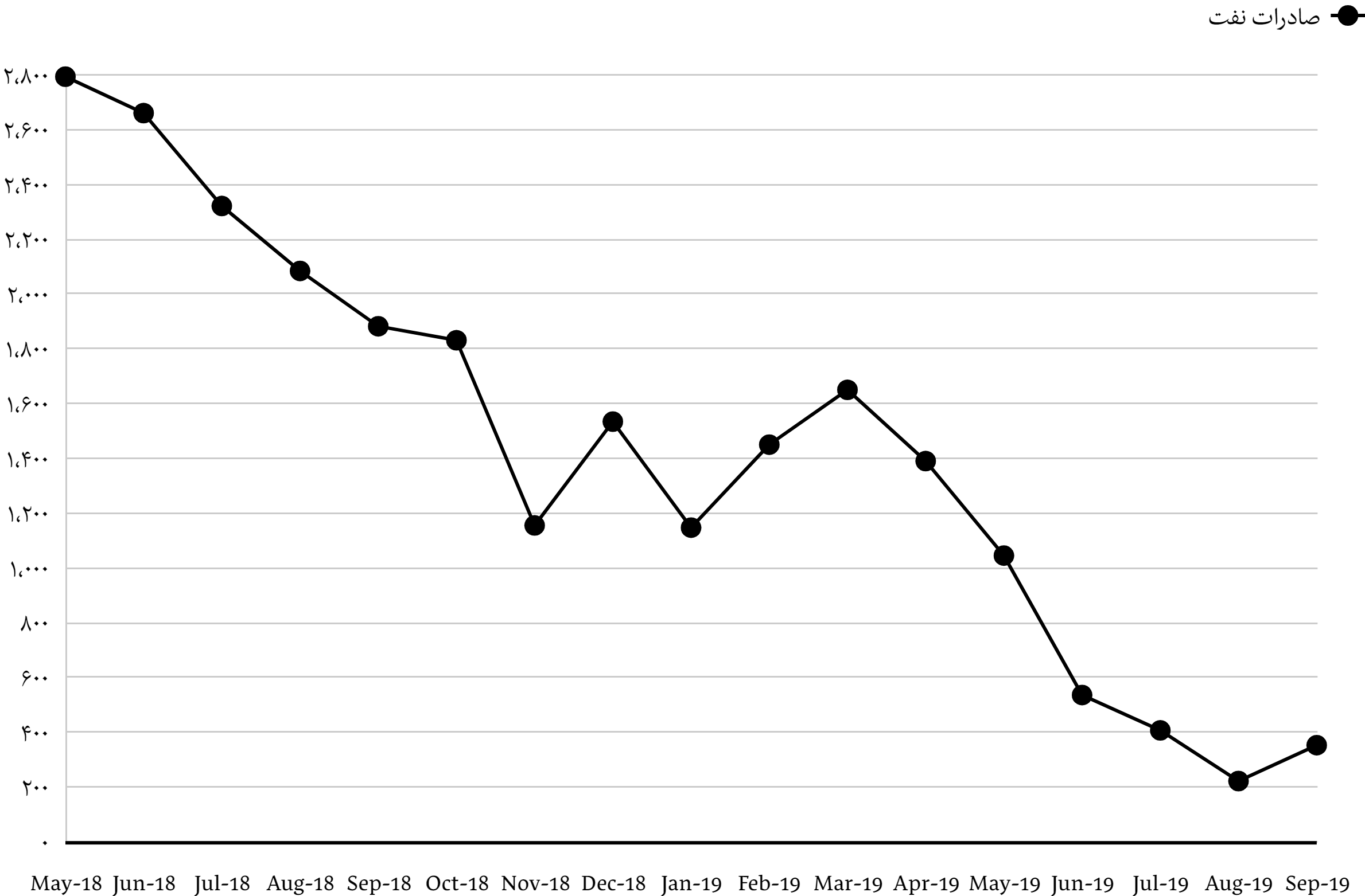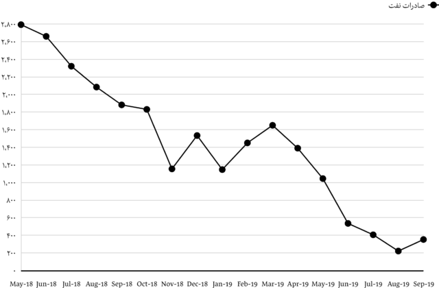در حالی که پس از برجام ایران توانسته بود سهم قبلیاش از بازار جهانی نفت را پس بگیرد و بالای دو میلیون بشکه در روز نفت بفروشد، با بازگشت تحریمها صادرات نفت ایران روندی نزولی داشته و به زیر ۴۰۰ هزار بشکه در روز رسیده است.