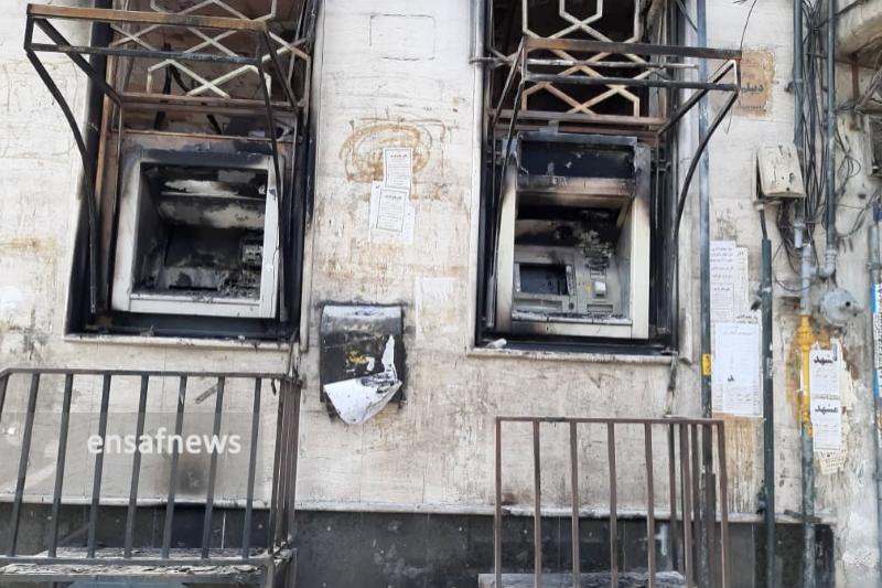 کمی جلوتر به ترتیب بانکهای ملت و کشاورزی تخریب و غیر قابل استفاده است اما بانک کشاورزی به دلیل آنکه در طبقه بالای خود مسکونی بوده، مورد آتش سوزی قرار نگرفته و با اسپری بزرگ روی آن نوشته شده « طبقهی بالا مسکونی است.» و فقط با ضربه به در و پنچره آن را تخریب کردند.