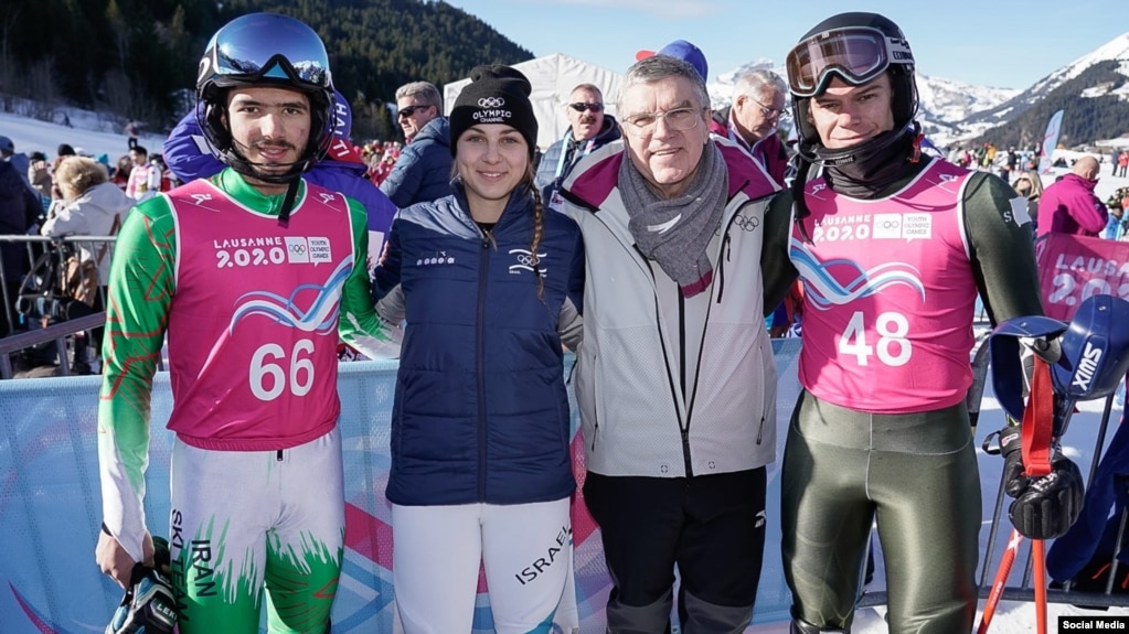در جریان رقابتهای المپیک زمستانی جوانان که در لوزان سوئیس برگزار می شود، رهام صبا، اسکی باز جوان ایرانی، پس از پایان مسابقه خود همراه با توماس باخ، رئیس کمیته بین المللی المپیک، با ورزشکارانی از اسرائیل و آمریکا عکس یادگاری گرفت.