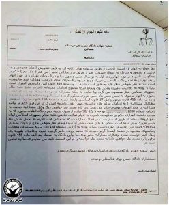 وی در تاریخ ۳ اسفندماه ۹۸ نیز براساس حکمی که توسط شعبه ۱۰۲ دادگاه کیفری دو شهرستان بجنورد به ریاست قاضی سیدمصطفی هاشمی صادر شده بود، از بابت اتهام “انتشار اکاذیب از طریق سامانههای رایانه ای به قصد تشویش اذهان عمومی” به ۲ سال حبس و ۴۰ میلیون ریال جزای نقدی و در خصوص اتهام “ترغیب و تشویق و تحریک افراد جهت اعمال خشونت آمیز” به ۱ سال حبس و ۵ میلیون ریال جزای نقدی و در مجموع به تحمل ۳ سال حبس تعزیری و پرداخت ۴۵ میلیون و پانصد هزار ریال جزای نقدی محکوم شد.