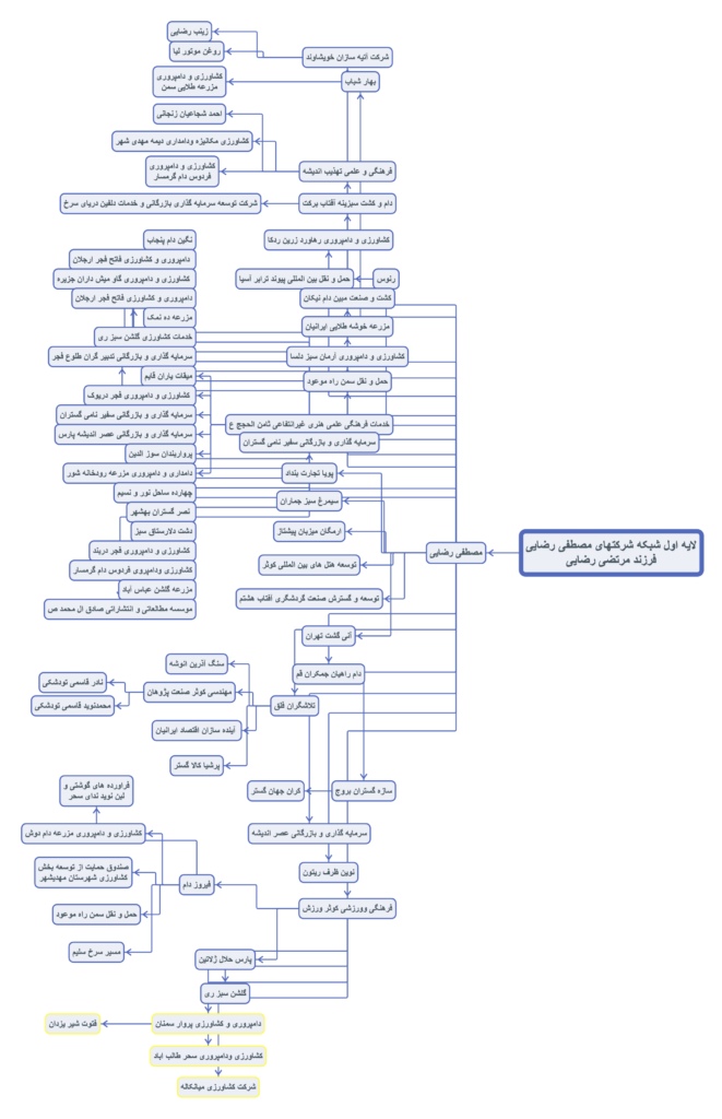 این روزها، مصطفی رضایی با تاسیس تعدادی شرکت مادر و بیش از ۴۰۰ شرکت تو در تو مانند: کشاورزی و دامپروری مزرعه طلایی سمن، کشاورزی مکانیزه و دامداری دیمه مهدی شهر، کشت و صنعت مبین دام نیکان، مزرعه خوشه طلایی ایرانیان، کشاورزی و دامپروی فردوس دام گرمسار، دامداری و دامپروری مزرعه رودخانه شور، دامپروری و کشاورزی فاتح فجر ارجلان، کشاورزی و دامپروری گاو میش داران جزیره، نگین دام پنجاب، پرواربندان سوز الدین، کشاورزی و دامپروری فجر دربند ، مزرعه گلشن عباس آباد، فراورده های گوشتی ولبن نوید ندای سحر، فراورده های گوشتی و لبن نوید ندای سحر و شرکت کشاورزی میانکاله، دقیقا در مراکزی فعال است که روزگاری جزو اموال هژبر یزدانی بود. حتی به صورت مشخص یکی از دامداریهای هژبر با ده هزار دام در فولاد محلهی شهمیرزاد حالا در تصرف خاندان مرتضی رضایی است.