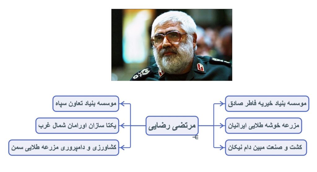 در سال ۹۱، مرتضی رضایی تصمیم به خروج از این شرکتها میگیرد. بهانه این تصمیم این بود که صلاح دیده که کار را باید به نیروی جوانتر بسپارد. به همین دلیل در سه شرکت فعال در عرصه دام و کشاورزی یعنی شرکتهای مزرعه خوشه طلایی ایرانیان، کشت و صنعت مبین دام نیکان و دام کشت سبزینه آفتاب برکت، پس از خروج مرتضی رضایی از هیات مدیره، پسرش مصطفی رضایی در ترکیب هیات مدیره جای گرفت تا هم نیروی جوان تر وارد بازار کار شود، هم مرتضی به پنهان بودن خود ادامه دهد و هم ثروت در خانواده بماند.