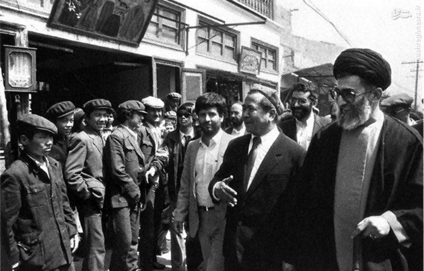 آیتالله خامنهای همراه با همتای چینی خود (رئیسجمهور وقت چین) در بازار شهر کاشغر در چین، اردیبهشت ۱۳۶۸-عکس از میزان