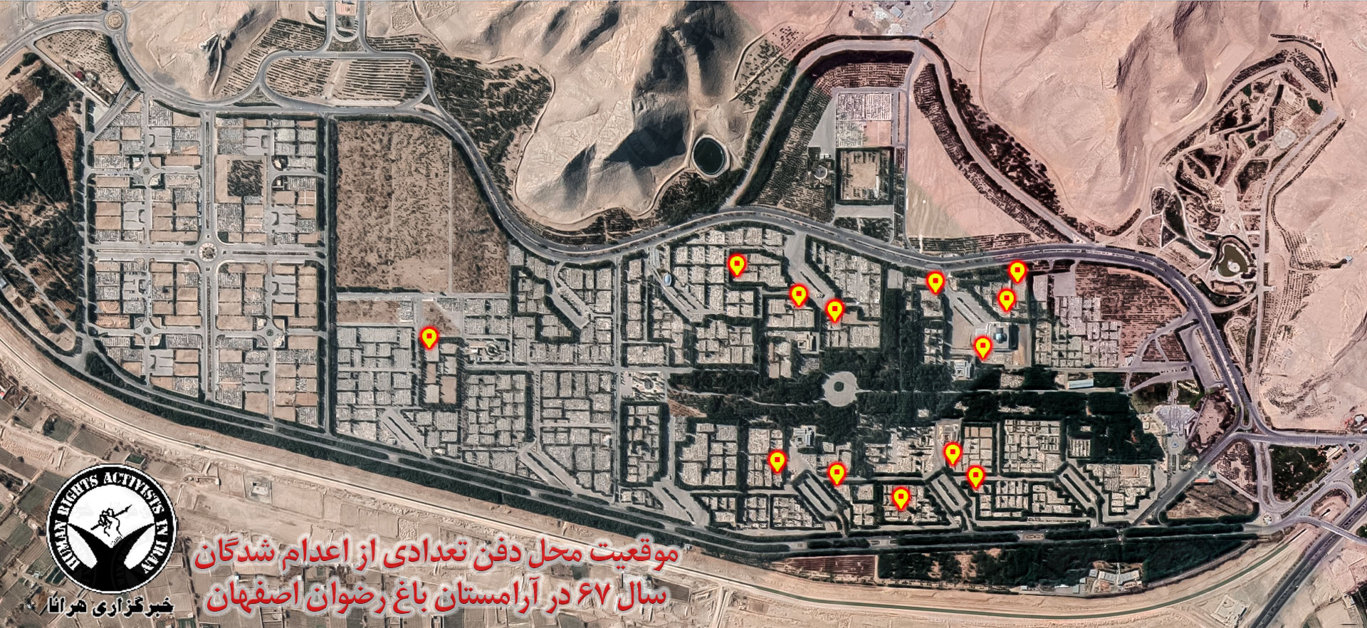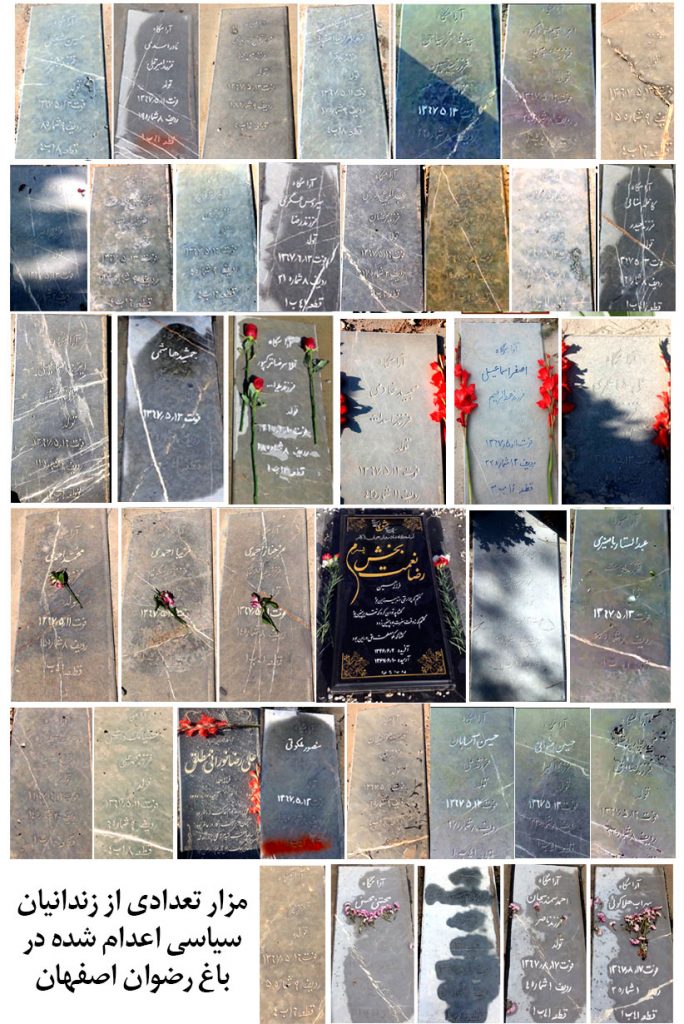 به گزارش هرانا، ارگان خبری مجموعه فعالان حقوق بشر در ایران، پس از انقلاب سال ۵۷ و به خصوص در حد فاصل سالهای ۱۳۶۰ تا ۱۳۶۷ هزاران زندانی سیاسی و عقیدتی در ایران به صورت فراقانونی اعدام و در اماکن بی نام و نشانی دفن شدند. شماری نیز در آرامستانهای شناخته شده به خاک سپرده شدند. در «باغ رضوان» اصفهان برخلاف شماری از شهرها عموم مزارهای اعدام شدگان دارای سنگ مزار هستند هرچند مشخصات آنان عامدانه نادرست نوشته شده و یا اطلاعات غلط در دفاتر داخلی قبرستان ثبت شده است. تلاش برای شناسایی این مکانها به مثابه حفظ سندی از جنایت علیه بشریت به هدف دادخواهی و مجازات آمرین و عاملین واقعه دارای اهمیت است.