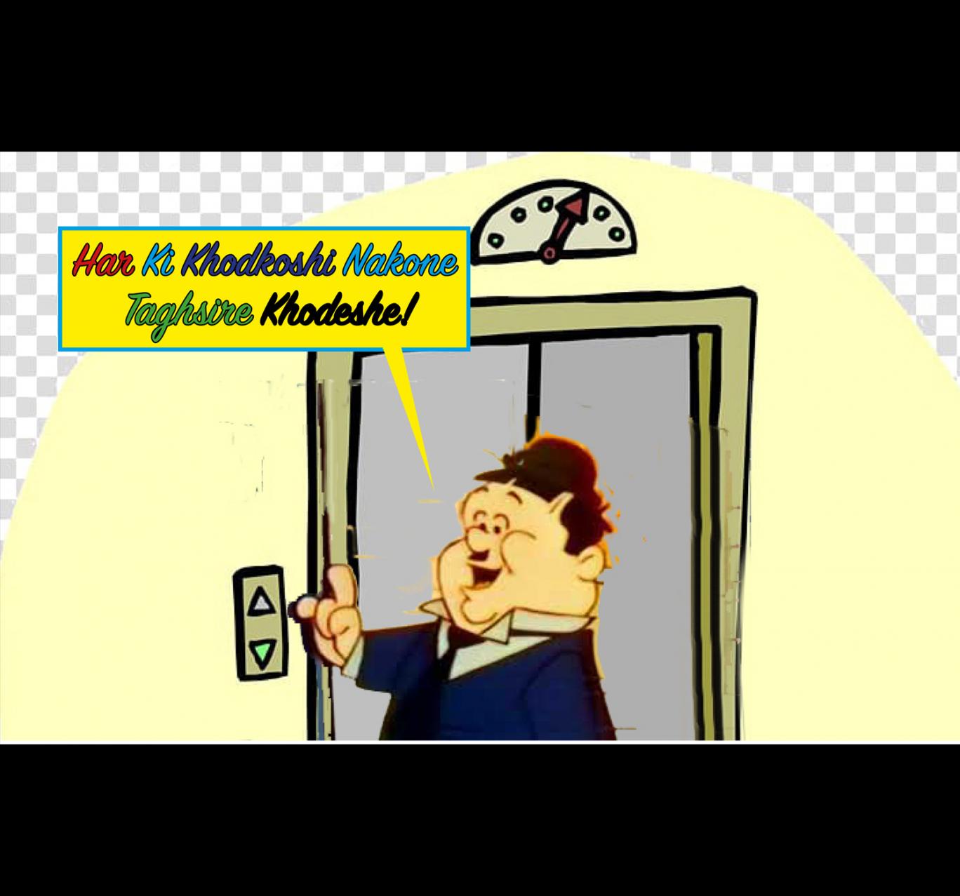 ناگهان با یک موزیک پرهیجان وسط سرسرای هتل گُرُمبی پخش زمین میشود و یک مقدار جرقه و ستارهء کارتونی دور سرش میچرخد و یک سری حرفهای لاتین هم رنگ و وارنگ، بازی کنان، لای ستارهها و جرقهها بالا و پائین میرود و محو میشود (پایان کارتون): Enna Lellah va Enna Elayhe Rajeoon