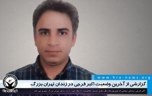 به گزارش خبرگزاری هرانا، ارگان خبری مجموعه فعالان حقوق بشر در ایران، اکبر فرجی، زندانی سیاسی دوران محکومیت ۵ ساله خود را در زندان تهران بزرگ سپری می کند.