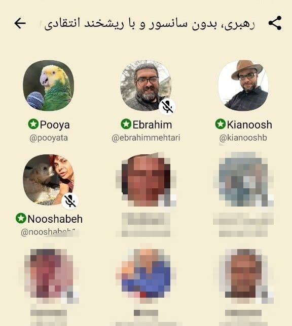 چندین اتاق کلابهاوسی حرفهای آقای خامنهای را به صورت زنده پخش کردند. عنوان یکی از اتاقها «پخش زنده بیانات رهبری بدون سانسور و با ریشخند انتقادی» بود. همزمان با پخش صحبتهای رهبر جمهوری اسلامی انتقاداتشان را کوتاه میگفتند. به طعنه اشاره میکردند که این بخش را با تاجزاده بود یا در آن بخش با ظریف چه کرد. وسط صحبتهای خامنهای هم به شیوه کلابهاوس تذکر میدادند که «لطفا در یک دقیقه جمع بندی کنید!»