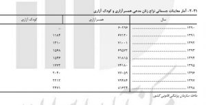 بر اساس این گزارش، ۷۹ هزار و ۴۸۴ معاینه جسمانی نزاع بر روی زنان مدعی همسرآزاری در سال ۹۷ انجام شده است که این آمار با رشد دو درصدی به ۸۱ هزار و ۶۲۴ معاینه در سال ۹۸ رسیده است.