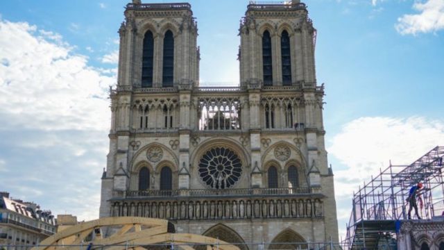 عملیات ایمنسازی کلیسای نوتردام در پاریس، دو سال بعد از آن که این بنای تاریخی طعمه حریق شد، به پایان رسیده است.