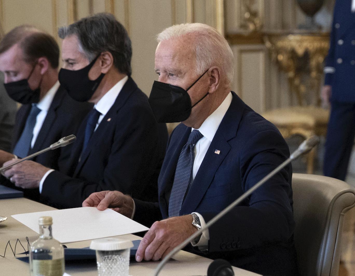 از راست: جو بایدن، آنتونی بلینکن، وزیر امور خارجه آمریکا و جیک سالیوان، مشاور امنیت ملی-Handout / Quirinale Press Office / AFP