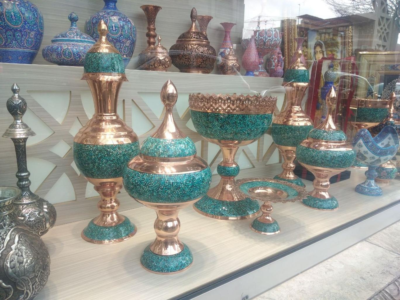 ظروف فیروزهکوب جزو گرانترین کالاهای بازار صنایع دستیاند. در این بازار، یک سرویس سماور و قوری پنج پارچه فیروزهکوب از حدود ۲۷ میلیون تا ۳۲ میلیون تومان قیمت دارند. سنبلدان و گلدان بزرگ فیروزهکوب ۸۸ میلیون تومان و یک شیرینیخوری فیروزهکوب حدود ۳۰ تا ۳۵ میلیون تومان است. این وضعیت قیمتی بر ظروف خاتم و قلمزنی و میناکاری نیز حاکم است. قندان و شکلاتخوری قلمزنی شده در یکی از مغازهها ۲۷ میلیون تومان قیمت زده شده است. گلدان مسی قلمزنی اصفهان ۲۱ میلیون تومان و سنگاب قلمزنی شده هم ۱۵ میلیون تومان است. البته این کالاها در سایزهای مختلف و بسته به کار انواع استادان، گاهی تا ۳۰ درصد ارزانترند. بهطور مثال، سرویس هشت پارچه شربتخوری فیروزهکوب را هم در مدل ۹ میلیون تومانی میتوانید بخرید و هم در مدل ۲۸ میلیون تومانی.