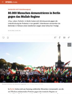 حال جمع زیادی از ایرانیان که هرکدام با یک داستانی جدا و زمانی متفاوت در مناطق مختلف جهان همچنان قطراتی پراکنده شده اند، به توصیف حامد اسماعیلیون، سخنران اصلی این مراسم، در رودهایی جاری شده و به هم پیوستند. آن چه که ۲۲ اکتبر در برلین، واشنگتن، لوس آنجلس و اتاوا شاهد بودیم، نه تنها جمهوری اسلامی که جهان را نیز غافلگیر کرده است. اما این حمایتها چه تاثیری بر اعتراضات داخلی در کشور دارد؟