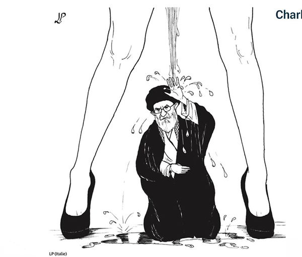 لوموند نوشت: «این کاریکاتور در ویژهنامه هفتم ژانویه به مناسبت هشتمین سالگرد حمله به دفتر شارلی ابدو و در حمایت از زنان و مردان ایرانی در مبارزه با دیکتاتوری مذهبی منتشر شده است.»
