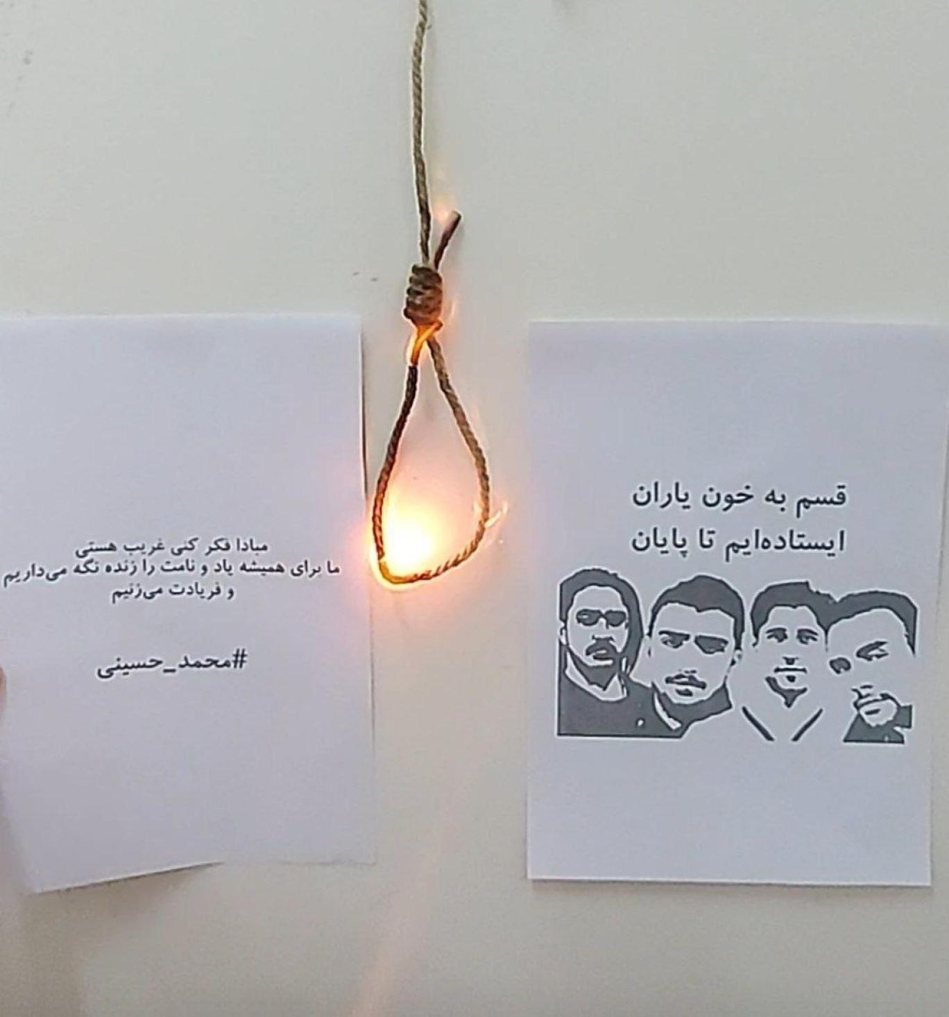 دانشجویان دانشگاه بهشتی نیز در اقدامی نمادین و در اعتراض به اعدام محمدمهدی کرمی و محمد حسینی، تصاویری از این دو شهروند اعدامشده را روی دیوارهای دانشگاه چسباندند.