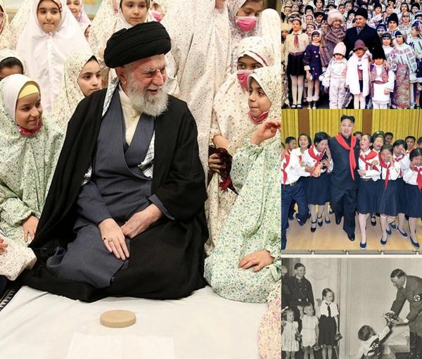 همچنان که عکسهایی از حضور هیتلر (رهبر آلمان نازی)، نیکولای چائوشسکو (دیکتاتور رومانی)، کیم جونگ اون (رهبر کنونی کره شمالی) و پدر و پدربزرگش (رهبران پیشین این کشور) در میان کودکان و دانشآموزان دختر و پسر برای خدمت به این هدف منتشر شده و میشود.