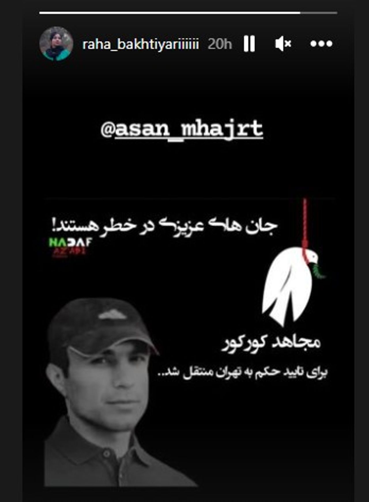 شامگاه ۲۱ اردیبهشت، خواهر مجاهد کورکور در استوری اینستاگرام خود نوشت برادرش را «برای تایید حکم اعدام» به شکل ناگهانی از زندان شیبان اهواز به تهران منتقل کردهاند.
