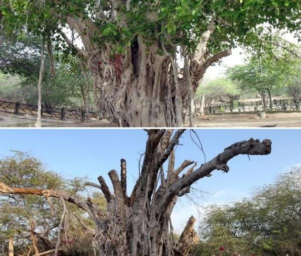 مرتضی رمضانی گالشی، معاون گردشگری منطقه آزاد کیش به خبرگزاری دولتی ایرنا گفت که ماموران شرکت عمران، آب و خدمات منطقه آزاد کیش روز جمعه ۲۲ اردیبهشت «بدون هماهنگی و اطلاع، اقدام به هرس غیراصولی درخت سبز چند صد ساله کیش کردند که منجر به نابودی این اثر گردشگری شده است.»