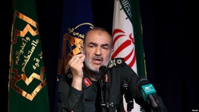 فرماندۀ کل سپاه پاسداران در جای دیگری از سخنانش خطاب به فرماندهان پیر سپاه پاسداران گفت : “این ۴۵ سال سرشار از بغض دشمن از صلابت شما و فرزندان شما بوده است.” او بی آنکه بگوید منظورش از “دشمن” کیست یا چیست، افزود : “دشمن شکست خورده…، سست، کم جان و افسرده شده است و دیگر دشمن سالهای دور نیست.”