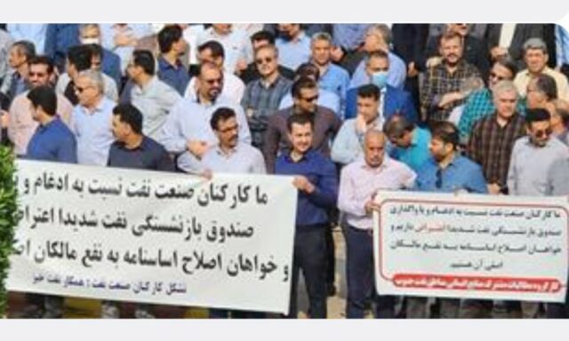 یکشنبه، ۲۱ آبان، جمعی از کارکنان و بازنشستگان ستادی شرکت مناطق نفتخیز جنوب در اهواز نیز در اعتراض به دستدرازی به صندوق بازنشستگی نفت و مصوبه دولت برای ادغام صندوقهای بازنشستگی، تجمع کردند. کارکنان شرکت مناطق نفتخیز جنوب همچنین اعلام کردند که به نقش دولت در «بیاحترامی و کشتن انگیزه» نیز اعتراض دارند.