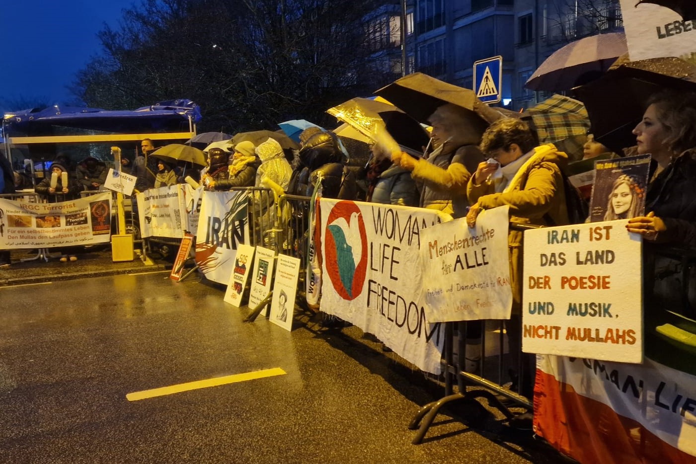 تجمع اعتراضی گروهی از ایرانیان مقابل کنسولگری جمهوری اسلامی در فرانکفورت