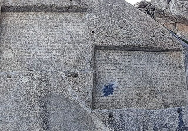 صبح امروز تصویری در فضای مجازی و در بین دوستداران میراث فرهنگی همدان دست به دست شد که حاکی از اصابت یک بمب دستی به کتیبههای گنجنامه همدان و به جاماندن لکه سیاه حاصل از دود بر یکی از این کتیبههاست.