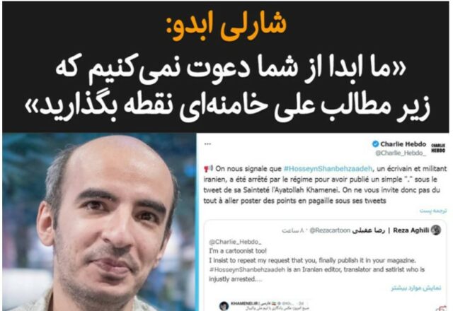 توانا – حساب کاربری شارلی ابدو در این پست نوشت: «ما مطلع شدیم که حسین شنبه زاده، نویسنده و فعال ایرانی، به دلیل انتشار یک نقطه “.” زیر توییت آیت الله خامنهای توسط رژیم دستگیر شده است.