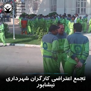 به گزارش اتحادیه آزاد کارگران ایران، امروز شنبه ششم مرداد، شماری از کارگران شهرداری نیشابور در مقابل ساختمان این شهرداری دست به تجمع زدند.