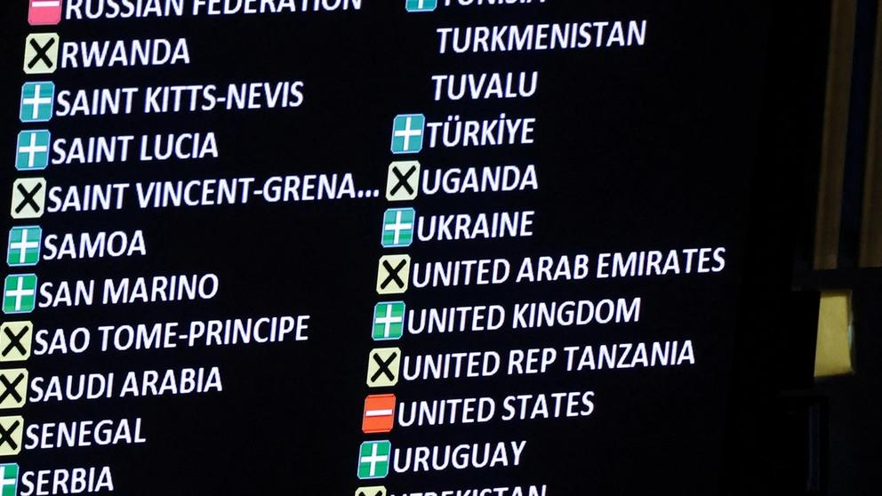 ایالات متحده، روسیه، کره شمالی و اسرائیل از جمله کشورهایی بودند که به این قطعنامه رای منفی دادند.