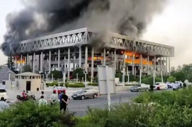 ویدیوی منتشرشده، دود ناشی از انفجار در محوطه صداوسیما را پس از حملات هوایی اسرائیل از نقطهای دورتر از این منطقه نشان میدهد.