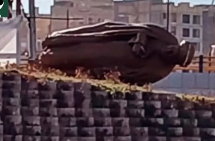 تصاویر منتشر شده حاکی از آن است که این مجسمه تنها دو روز پس از نصب بر اثر وزش باد از جا کنده شده و سقوط کرده است.