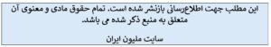 مستند «عیّار تنها»؛ زندگی، آثار و دیدگاههای بهرام بیضایی - پنجشنبه, 11ام دی, 1404 اندازه قلم متن صدای آمریکا مستند «عیّار تنها»؛ جامعترین اثر تصویری از زندگی، آثار و دیدگاههای بهرام بیضایی اشتراکگذاری این: اشتراک گذاشتن توسط اس ام اس (در پنجرۀ تازه باز میشود) X برای اشتراکگذاشتن فیسبوک خود کلیک کنید (در پنجرۀ تازه باز میشود) فیسبوک Related به کانال تلگرام سایت ملیون ایران بپیوندید برچسبها: مستند «عیّار تنها»؛ زندگی، آثار و دیدگاههای بهرام بیضایی